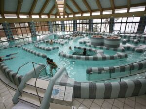 人が一番リラックスできる不感温度(33~36℃)に設定されています。そのため、長く無理なく、心地よく運動やリラクゼーションを楽しめます。また、温度差による交代浴の効果も得られます。水深も身体に負担のかからないよう、60cm~115cmに設定しています。