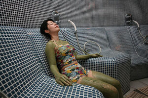 フランス・ブルターニュ地方で収穫された海藻と多伎町の海水を混ぜ、ペースト状にしたものを体に塗りスチームで蒸らすサウナ浴です。
