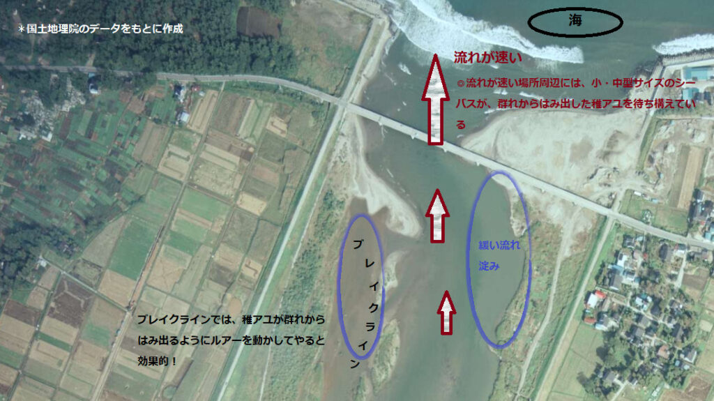 これらを狙って捕食するために集まったシーバス攻略が「稚アユパターン」と言います。