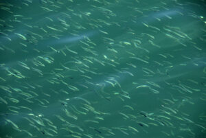 表層&ボトムをスローに動かしたり、またまたシーバスに追いやられパニックを起こしている様子を表現するなど、躍動感を出すのがポイント。