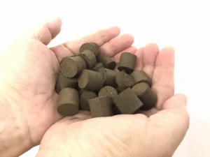 1・池などにおいて1㎥の水に、GoGreenCube10g(約2個分)を投入します。その後、定期的に(1週間〜2週間に一度)同等量のGoGreenCubeを投入します。