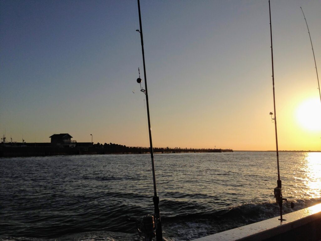 重めの中通しオモリの先に餌をつけ、仕掛けを投げ込んだらひたすら当たりがくるのを待ちます。
