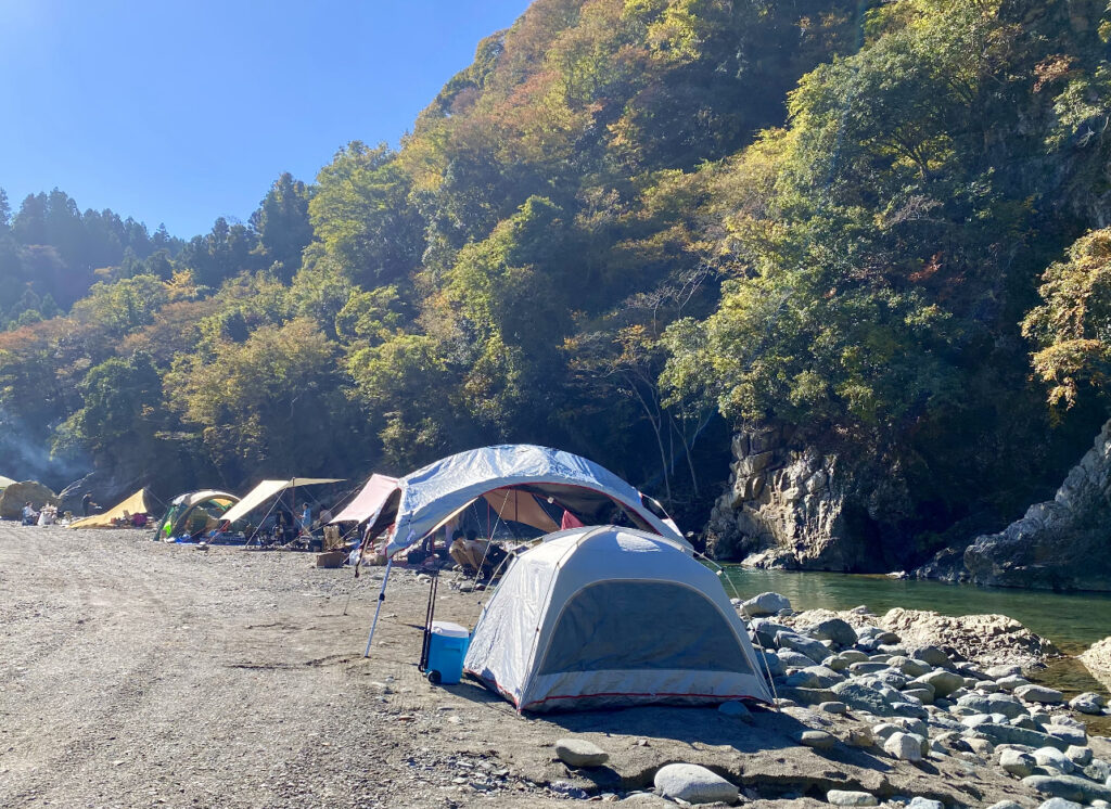 目の前を流れる清流「道志川」での川遊びや釣り、ニジマスの掴み取りは当時から大変人気のアクティビティでした。都心から1時間足らずで来られる自然の音を楽しめ、ランタンの灯を寡黙に楽しめるスポットとして人気を博したキャンプ場。
