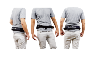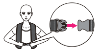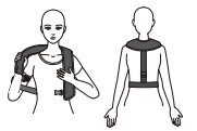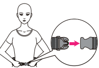 ②後ろから背中に密着するようにベルトを調整しバックルを外します