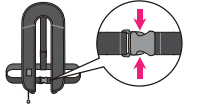 ③バックルをしっかり固定してください。もし固定がしっかりされていない場合は、落水の 際の衝撃で外れてしまうことがあります