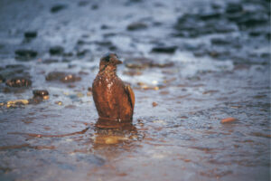 鳥は油に汚染され、水で洗い流すこともできず亡くなってしまいます。