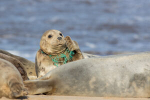 アザラシも網に絡まって餌を取るのができなくなり餓死したり、体内に重金属が蓄積し衰弱死したりしています。