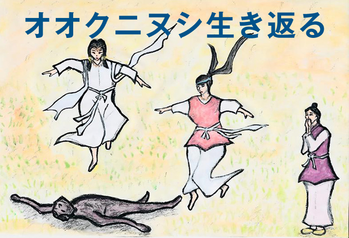 すると、みるみるうちにやけどが治り、オオクニヌシは、元のとおりたくましい姿によみがえったのです。