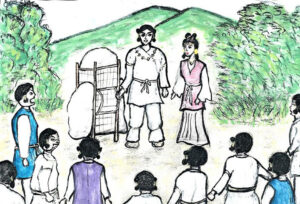 ヤガミヒメのもとにたどり着くと、白兎の予言通りヤガミヒメはオオクニヌシを選び二人は結婚しました。