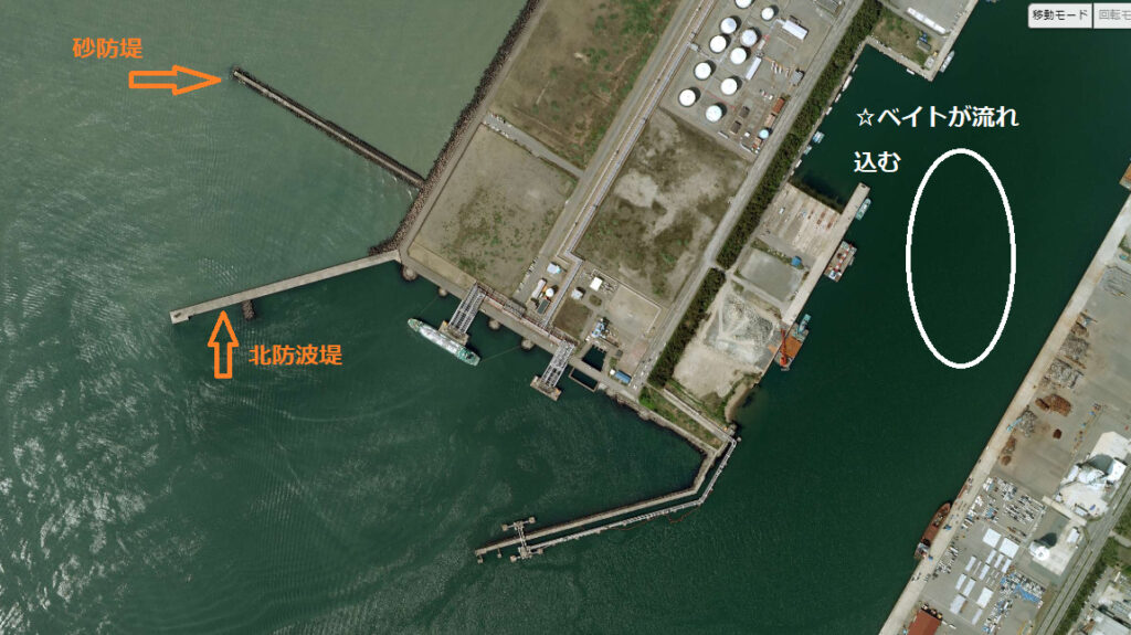 北防波堤と砂防波堤以外にも、湾内において釣果が期待でき、ここはベイトが流れ込むため、それを追っかけてヒラメやシーバスも流れ込みます。