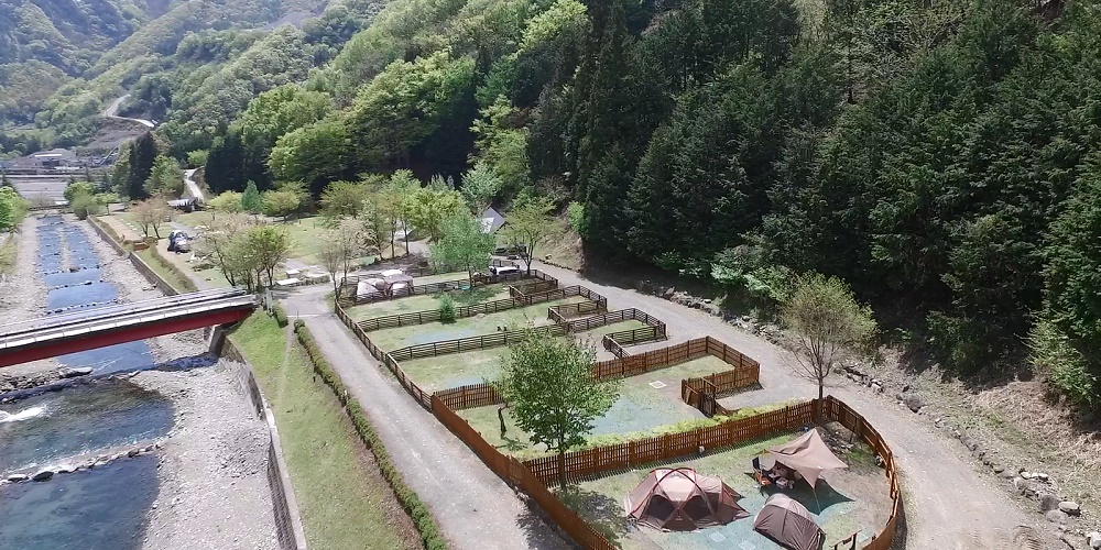 南アルプスの麓に位置するこのキャンプ場は、都心から近くアクセスも良好。