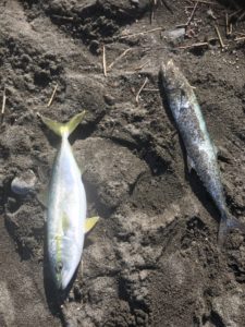 サーフに打ち上げられているベイトや、目で確認できる範囲で泳いでいるベイトはどのような魚であるか、サイズなどを把握しより近いルアーをチョイスします。