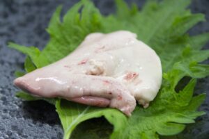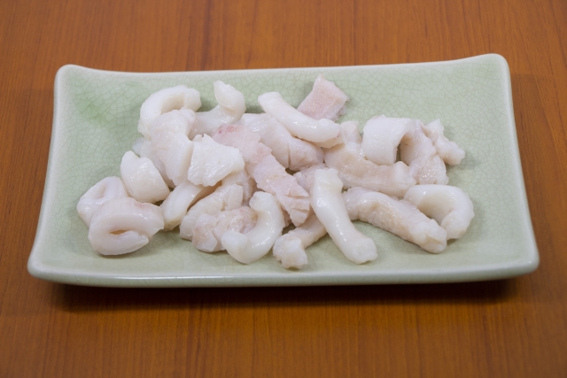 マンボウは単お悪質でできているゼラチン質が多いため、脂肪がなくプルプルした淡白な味わいです。これ筋トレ飯にめっちゃいいんじゃ。