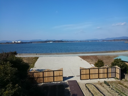 | 入り口にはテラス席もあり、そこから見える浜名湖はまさに絶景です!景色独り占めです! |