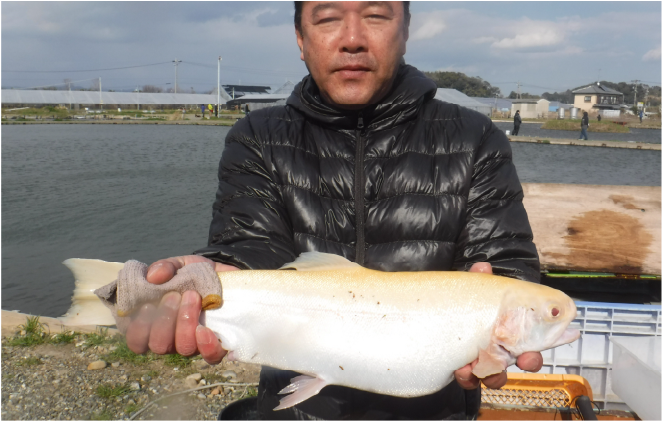 冬季はニジマスを釣る事ができ、時々珍しい『アルビノトラウト』も釣れるそうです。