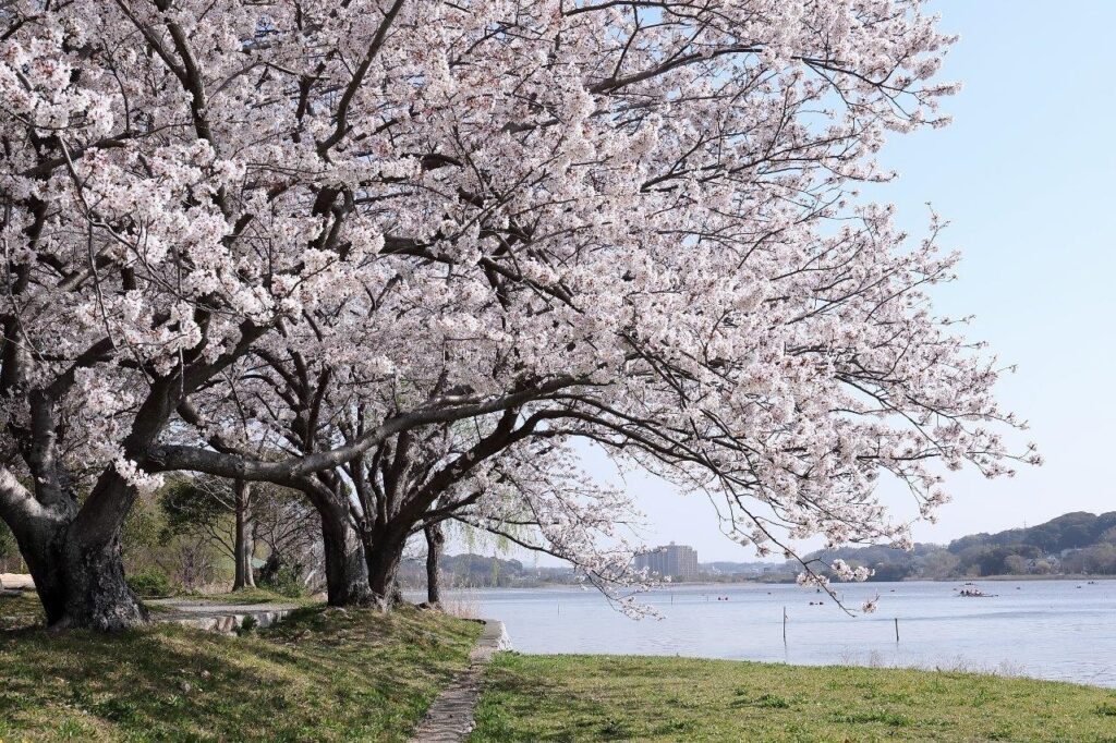 例年2月下旬から3月中旬頃まで、約90本の河津桜が見頃を迎えます。南岸に続くエリアでは、60本以上の河津桜が植えられ、北岸の管理棟付近でも早咲きの寒緋桜を楽しめる。早咲きの桜に続いて、ソメイヨシノ、山桜、しだれ桜、八重桜が花を咲かせる。