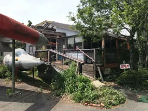 店外に飾ってある戦闘機はなんと本物の『実機』!