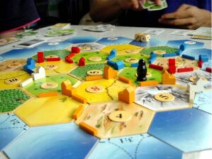 世界のボードゲームの中で2000万個以上の販売数を誇る、ドイツ発の大ヒットゲームです。 「カタンの開拓者たち」は、「カタン島」という無人島を舞台に、3~4名のプレイヤーが参加し、島を開拓競争するボードゲームです。開拓地を増やす・街を成長させる・道を拡張する、がメインアクションで、街の数や道の長さを競い合って10点先取した人の1人勝利ゲームです。
