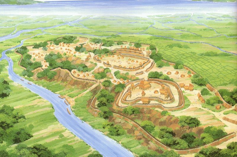 弥生時代に入ると海退した陸地は『水田稲作』にとって絶好の耕地になり、集落も『台地上』から『平野』に移動して行きます。