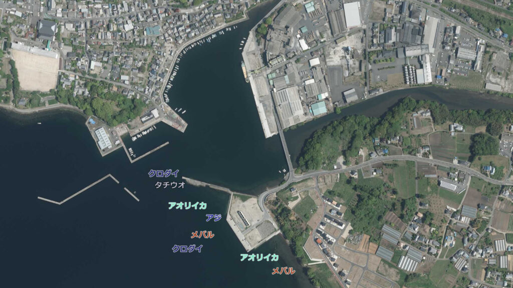 さらにメバル、アオリイカの実績も高く、地形も沖にいくにつれて徐々に深くなっていきます。