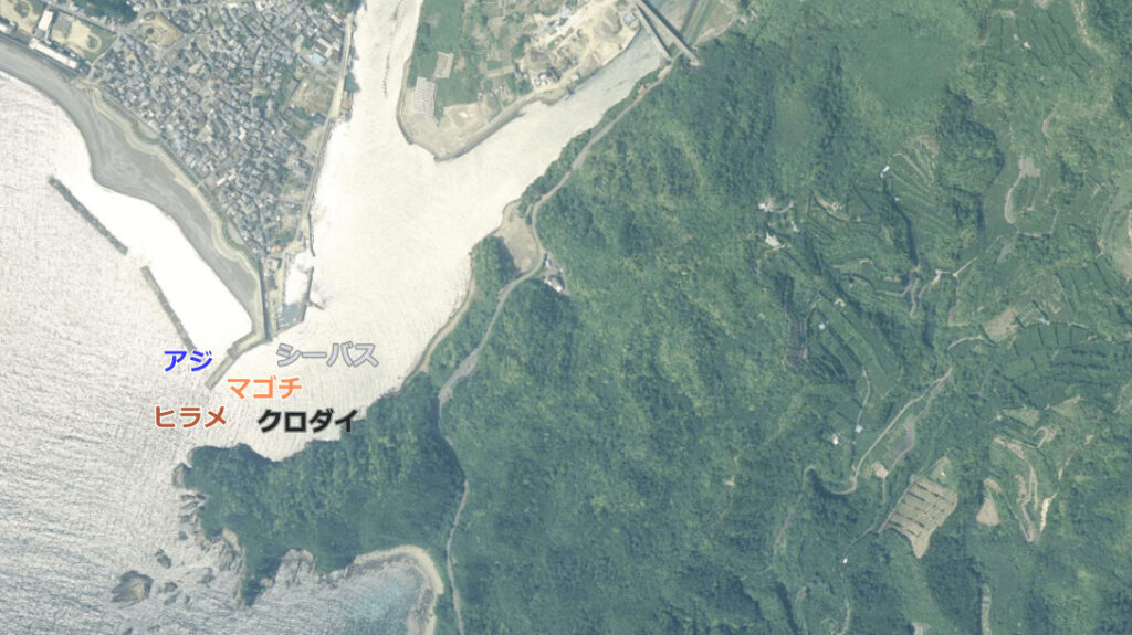 ここでは大型のヒラスズキも狙えるとあって、時期によっては「落ち鮎パターンのルアー」でヒットを量産させる人も数多い。