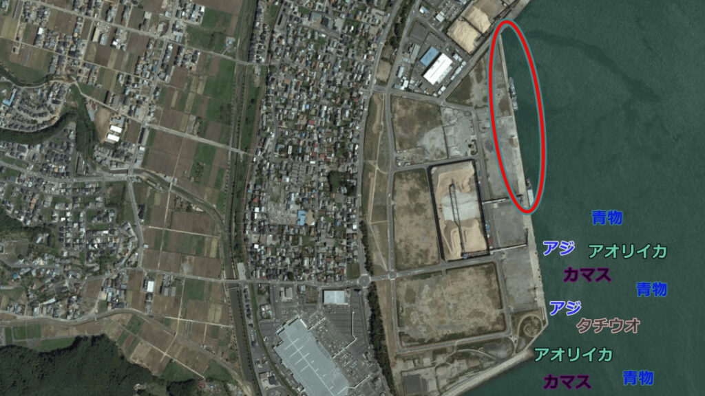 大波止では型のよいアオリイカが狙え、他には大物のマダイやタチウオが狙えます。