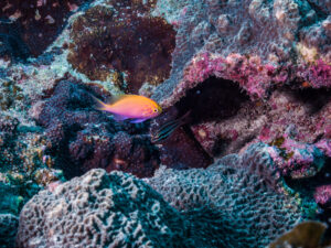 熱帯魚のようなカラフルな魚も見られます。