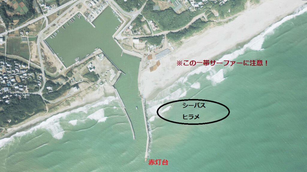ここのポイントは波があるとサーファーで賑わいますので、トラブルには十分注意しましょう。