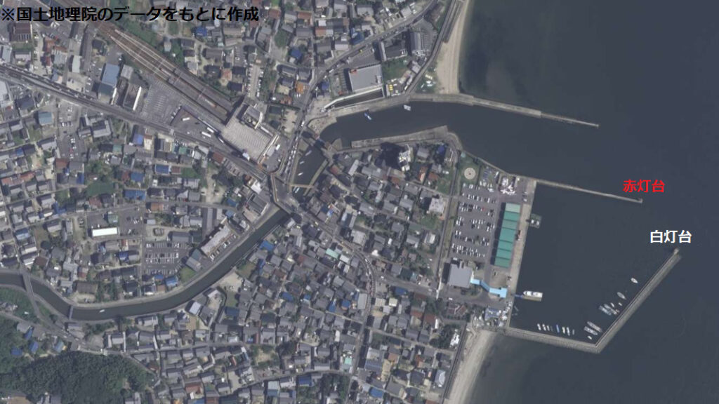 赤灯台からはシーバスが釣れ、白灯台からは波止の外向き側で根魚、クロダイが狙えます。